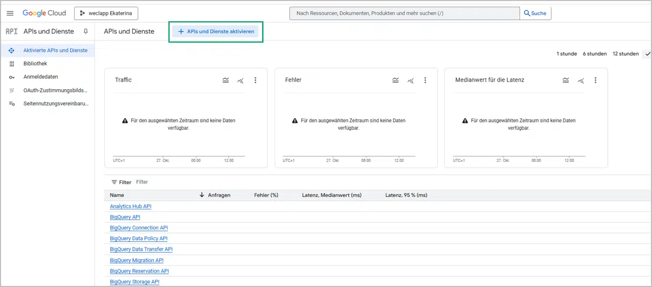 - Wähle auf der Seite “+ APIs und Dienste aktivieren”
