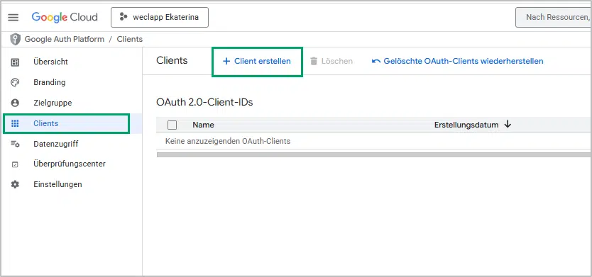 Client-ID und Clientschlüssel erstellen