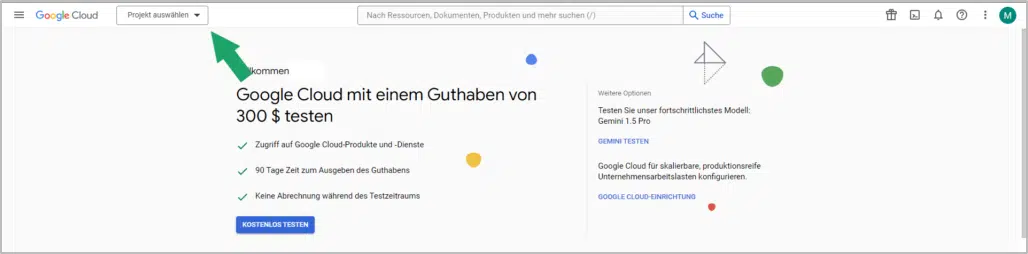 - Melde dich in deinem Google-Account an und öffne anschließend die Google Cloud Console.